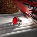The star of the show is the natural reddish-brown agate stone, carefully selected for its rich, warm hues and intriguing patterns. The stone’s polished surface gleams, creating a stunning contrast against the silver setting, which further highlights the unique character of the agate.