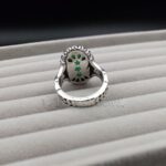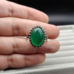 The focal point of this ring is the enchanting Green Agate stone, carefully handpicked for its soothing shades of Green that evoke feelings of tranquility and calm. The stone’s polished surface gleams with a subtle iridescence, perfectly accentuating the silver setting and creating a harmonious visual symphony.
